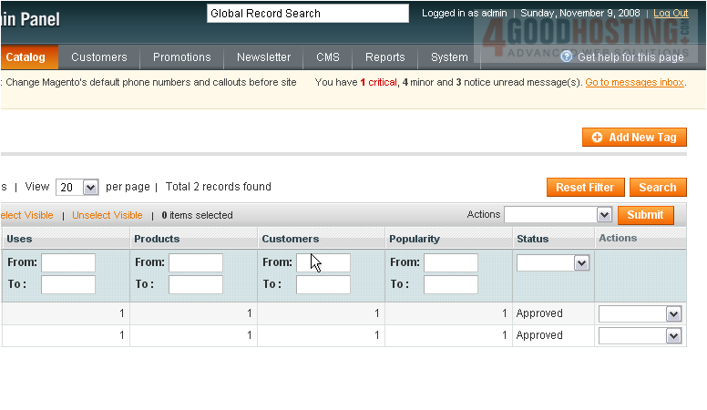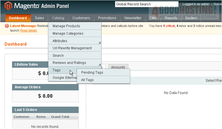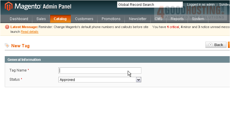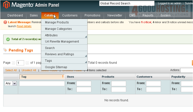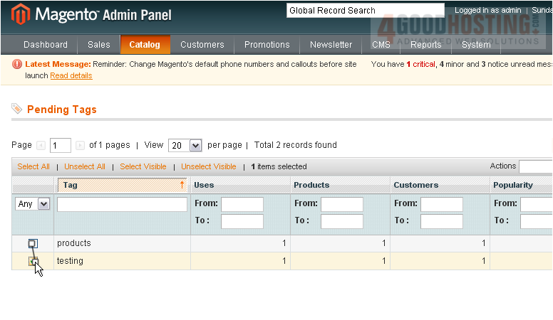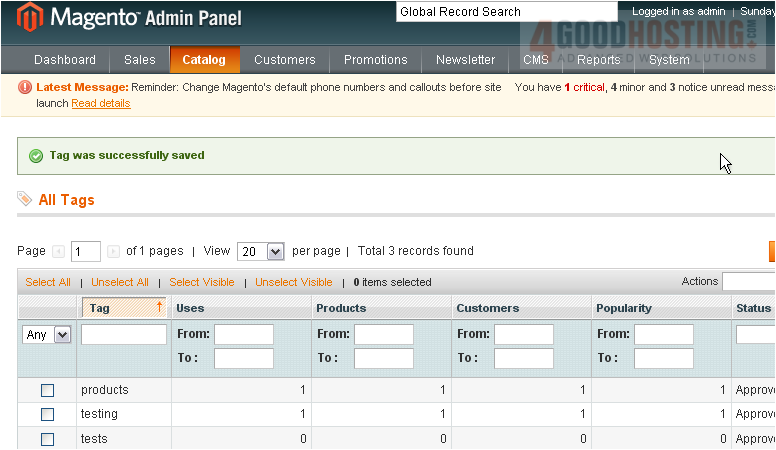 This tutorial will show you how to create and approve product tags in Magento Commerce, and assumes you're already logged in to Magento