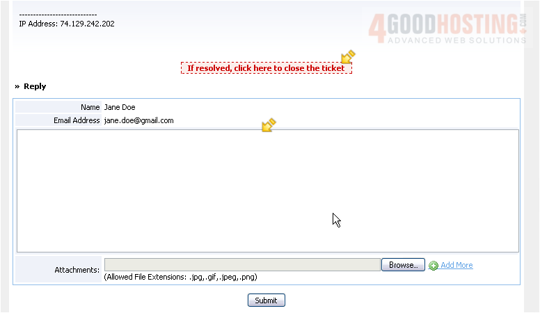8) We can add more details to the ticket by typing them here... or we can mark the ticket as closed by clicking here