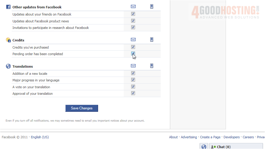1) Facebook allows you to receive notifications via e-mail and SMS on your phone. Or, if you find yourself receiving too many notifications, you can turn some of them off.