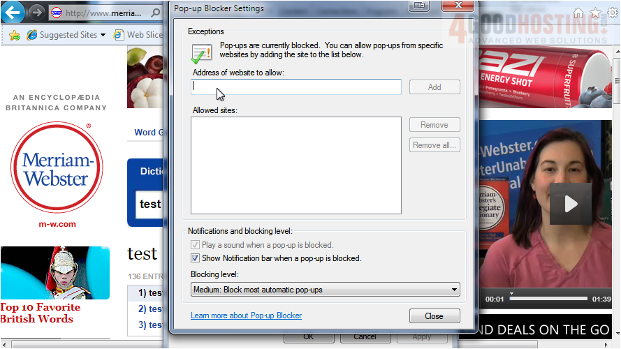 That's it! Now you know how to manage your pop-up blocker in Internet Explorer.