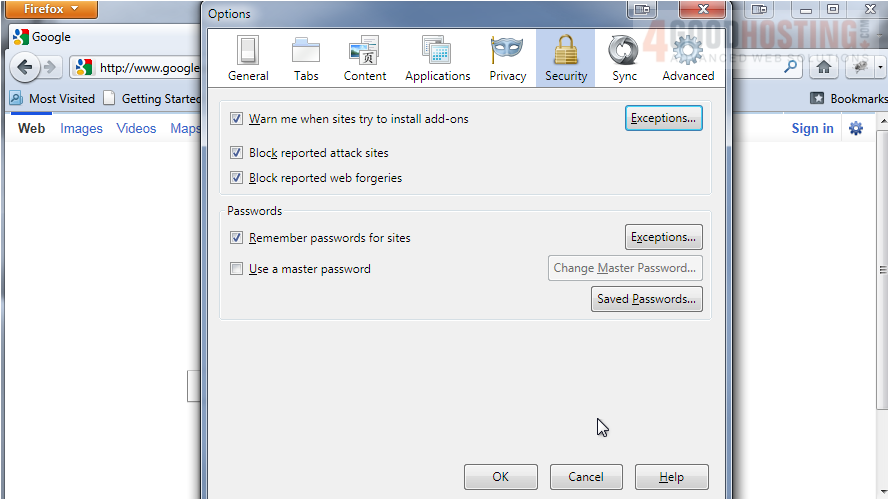 We have already covered passwords in the last tutorial, but here is where you can choose to have Firefox remember the passwords you use for sites.