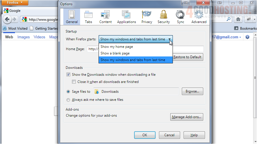You can choose one of these three options for Firefox to perform when it starts. Show my home page loads only a single website that you set. Show a blank page opens the browser but doesn't load a website, which is a good option if Firefox starts slowly.