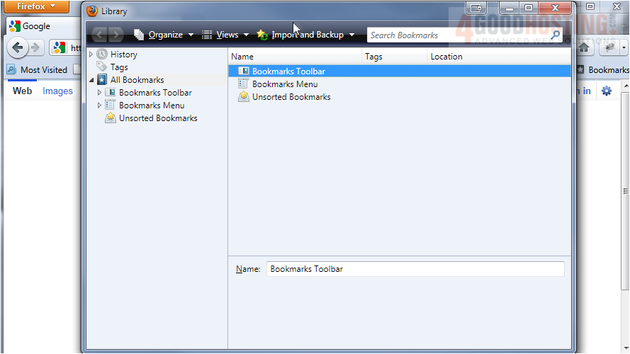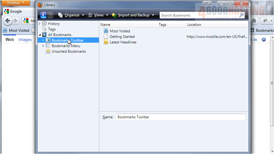 Let's view the Bookmarks Toolbar.
