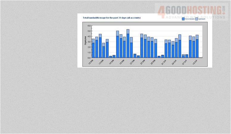 Whenever someone downloads a file or views a picture that you host on your account, it uses up bandwidth. That costs your hosting provider money, and they pass that cost on to you. This graph shows the bandwidth usage, both downloads and uploads, for a month