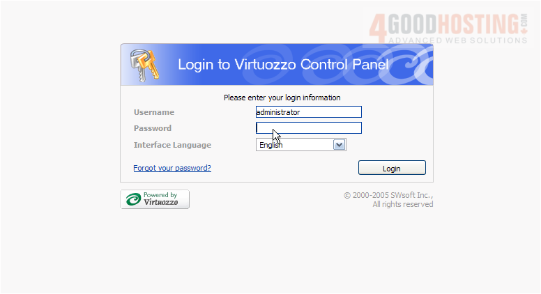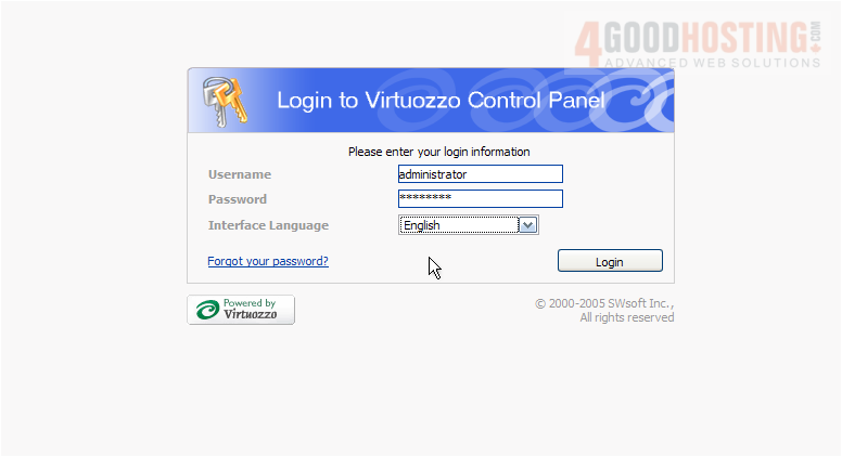 That's it! You're now logged in to VZPP, and can begin managing your VPS.