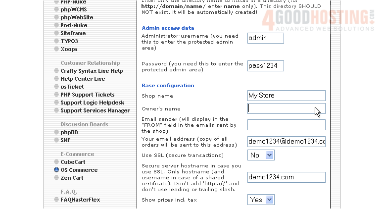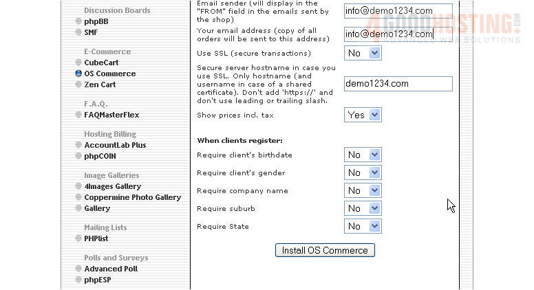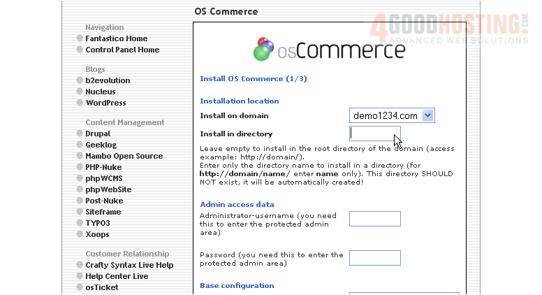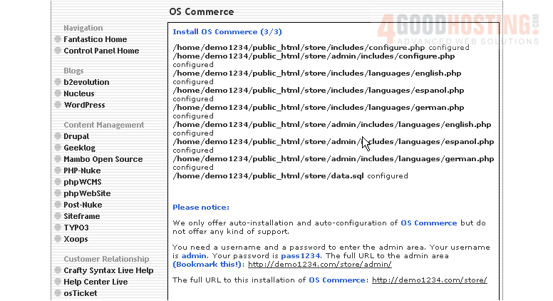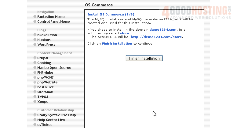 This is the end of the tutorial. You now know how to install osCommerce to your account from within Fantastico