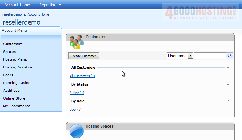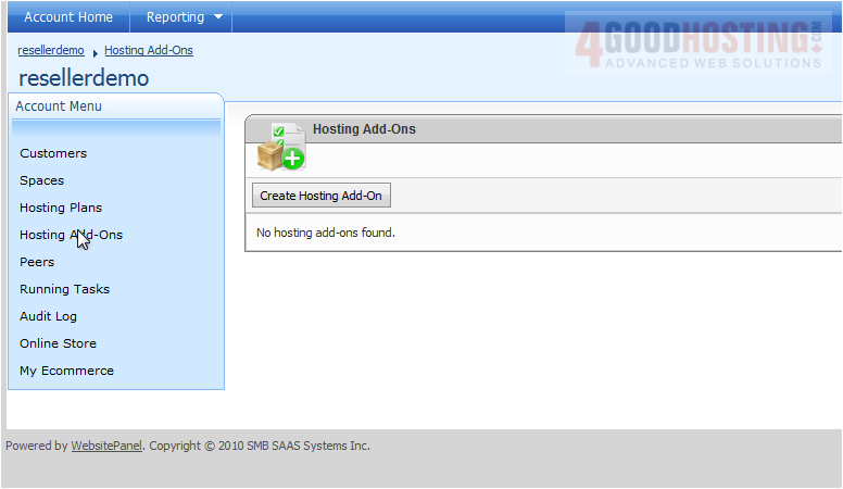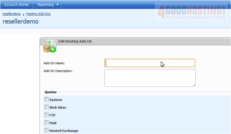This tutorial assumes you have already logged into your WebsitePanel reseller control panel