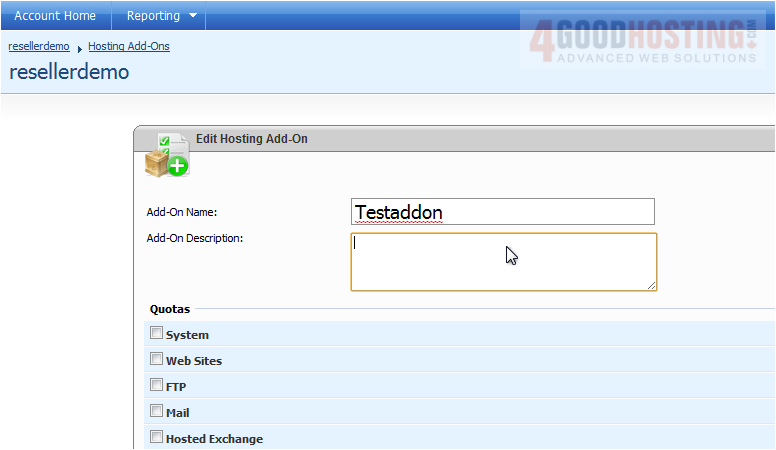 Now let's learn how to create hosting account addons
