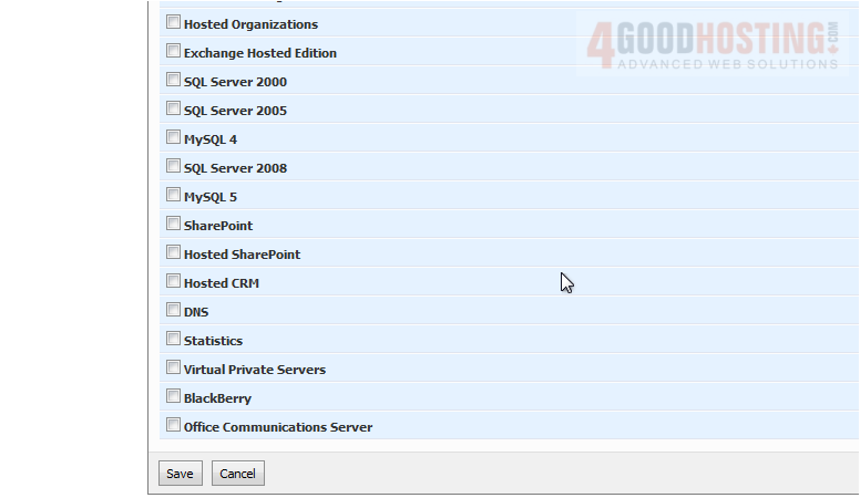 Here you will select the features you wish to make as an addon. You can charge for additional email accounts, databases, etc.