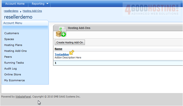 This is the end of the tutorial. You now know how to create Hosting Account Add-Ons in WebsitePanel