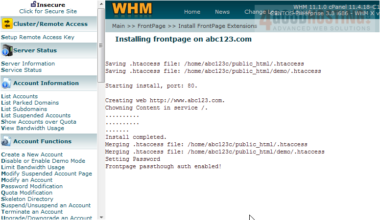 That's it! Â FrontPage extensions have been installed in the abc123.com account