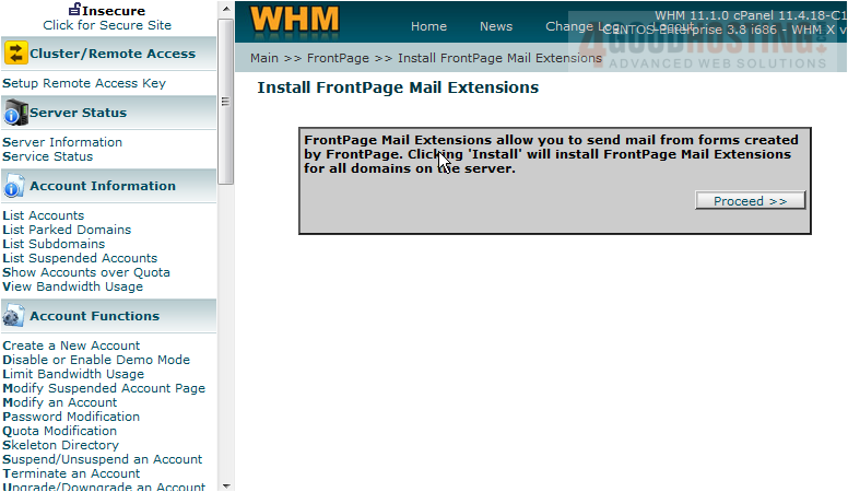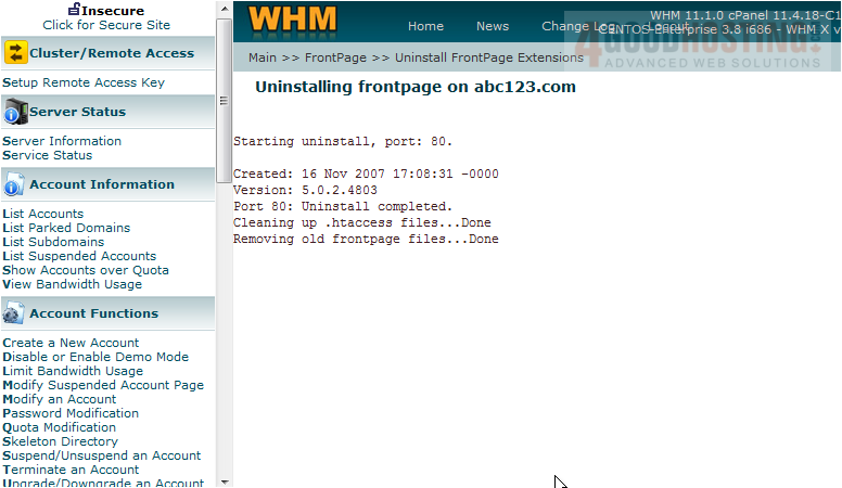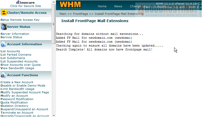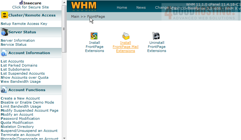 This is the end of the tutorial. Â You now know how to install and remove FrontPage extensions from any account in WHM. Â Remember that your customers can also do this from their own cPanel control panel
